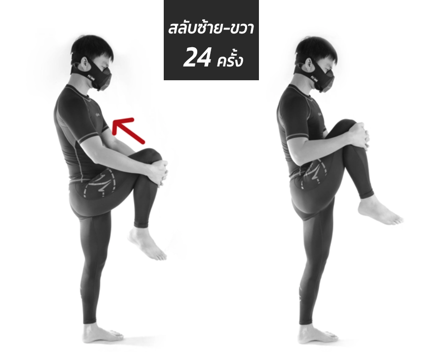 Knee Hug ข้างละ 12 ครั้ง (รวม 30 วินาที)