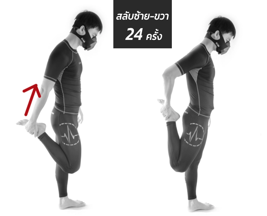 2. Quad Stretch ข้างละ 12 ครั้ง (รวม 30 วินาที)