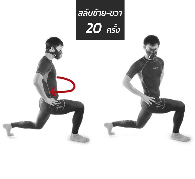 4. Lunge Twist ข้างละ 10 ครั้ง (รวม 30 วินาที)